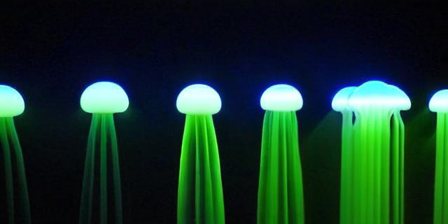 - Исследовательские лаборатории университетов разработали прототипы биолюминесцентных стёкол и гидрогелей для интерьерного освещения в качестве акцентного, а не основного.