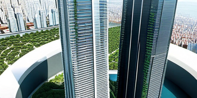 Огромный меганебоскреб, рассчитанный на размещение до 36 тысяч человек с полным спектром услуг — от жилья до школ и больниц. Пока находится на стадии планов, но служит ориентиром для будущих исследований.